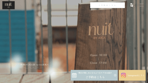 「無理な勧誘は一切なし」という方針を明確に打ち出しているnuitは、施術に集中できる環境を来店者に保証している。支払いは各種クレジットカード・PayPay・楽天Pay・d払い・Alipay+・Smart Codeに対応し、現金は取り扱っていない。大阪府柏原市大正1丁目3−1の建物2階に位置し、近隣にコインパーキングがある。営業時間は10:00〜17:00、定休日は不定休。